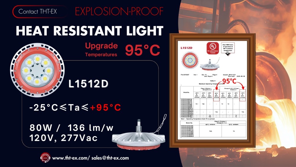 Standard industrial lights fail at extreme temperatures—THT-EX thrives. We are proud to announce a Global Exclusive: Our LED Explosion-Proof Lights are the world’s only solution UL-certified to withstand continuous 100°C (212°F) high-temperature endurance testing.