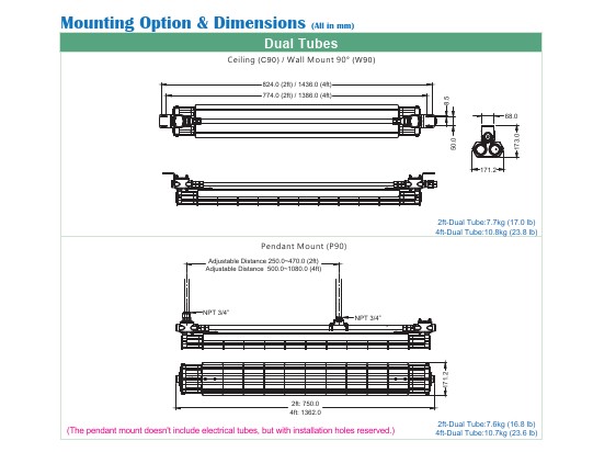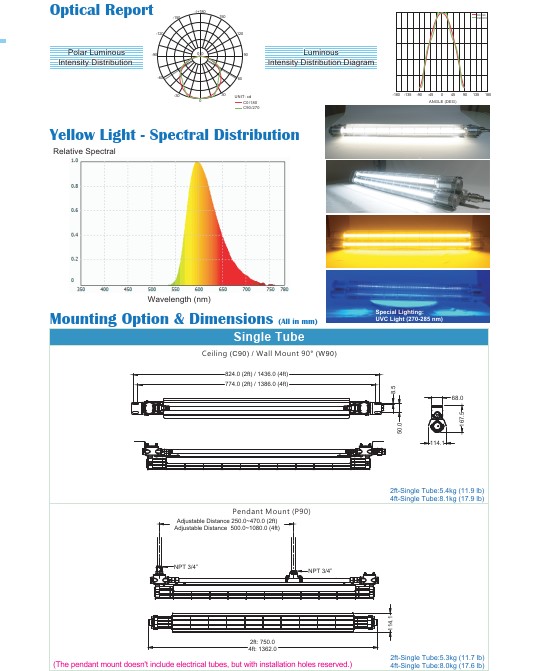 | Wattage (Amps) | 2ft-Single Tube:10W / 4ft-Single Tube:20W / 2ft-Dual Tubes:20W / 4ft-Dual Tubes:40W |